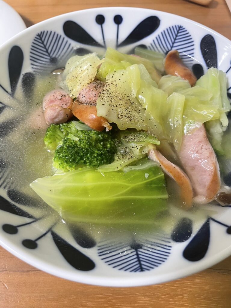 夫は健康に対して意識高い系なので、カルボナーラは塩分は控えめ。素材の味が生きてて美味しいです!スープは間違えて濃いめになってしまったと言っていましたが、濃い味が好きな私としてはちょうどよかったです。