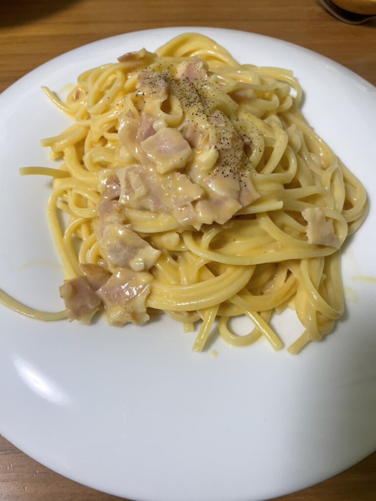 昨日、「夫ちゃんのカルボナーラが食べたいなぁ〜(圧)」とリクエスしたら夫が作ってくれました。